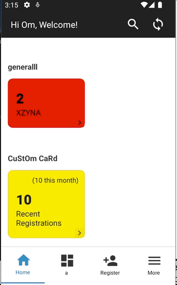 - Recent Registrations Card (Recent duration filter configured as - 1 day)